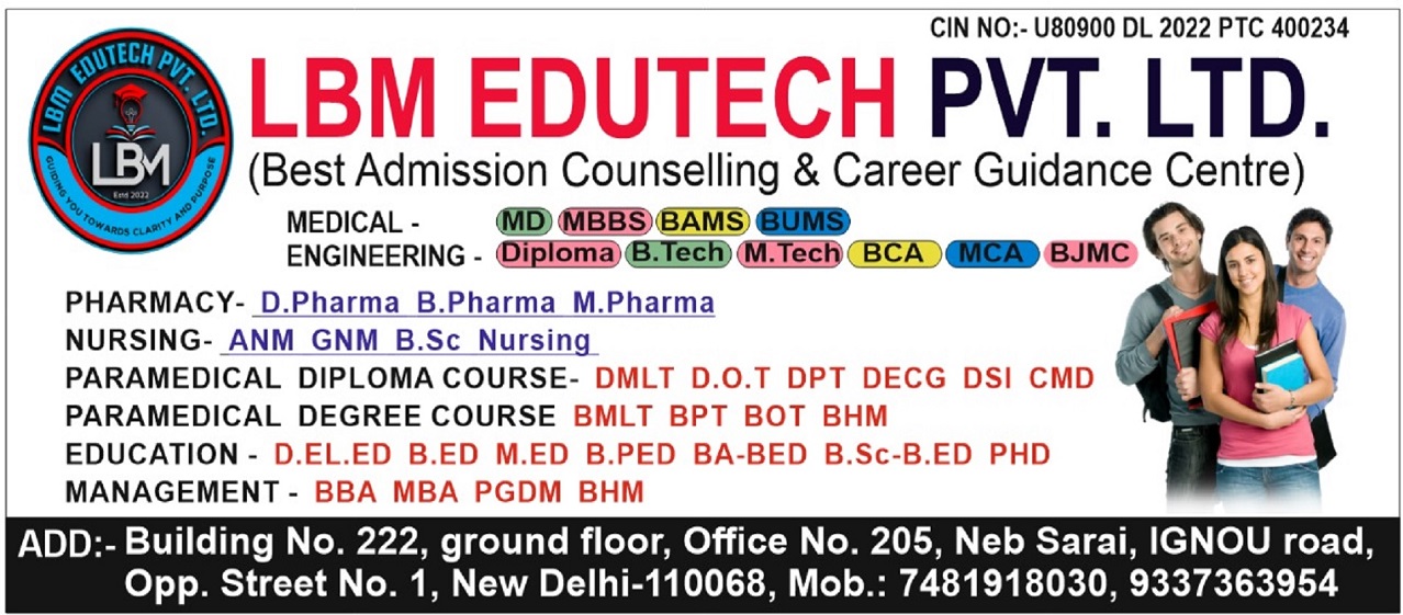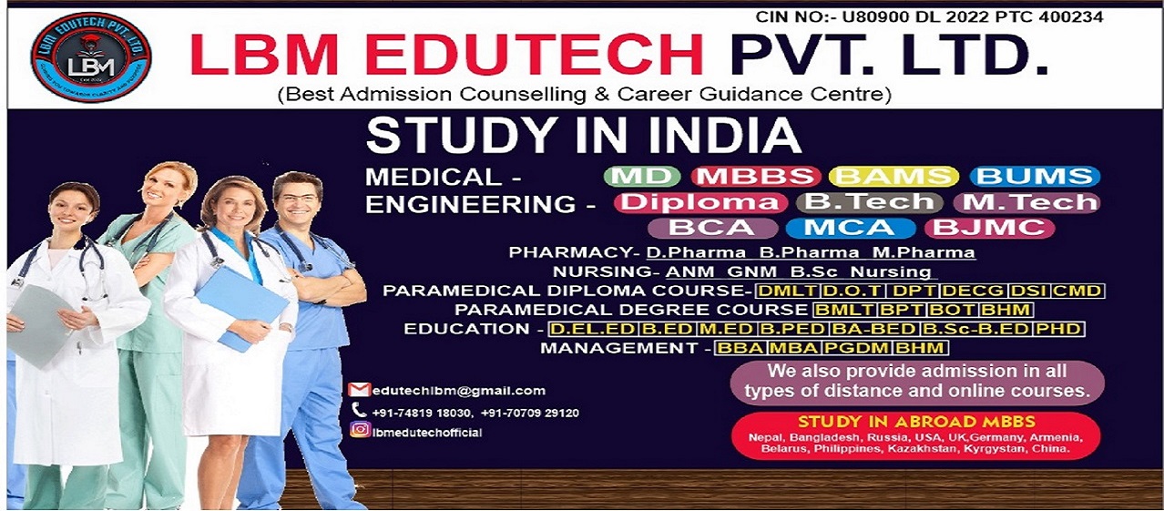 After completed the 12th i was very confused about my carrier then i discussed with Pramod Kumar Sir they help me admission in Bsc Nursing now i am persuing Bsc Nursing and Very happy about the Services of LBM Edutech Pvt. Ltd.
